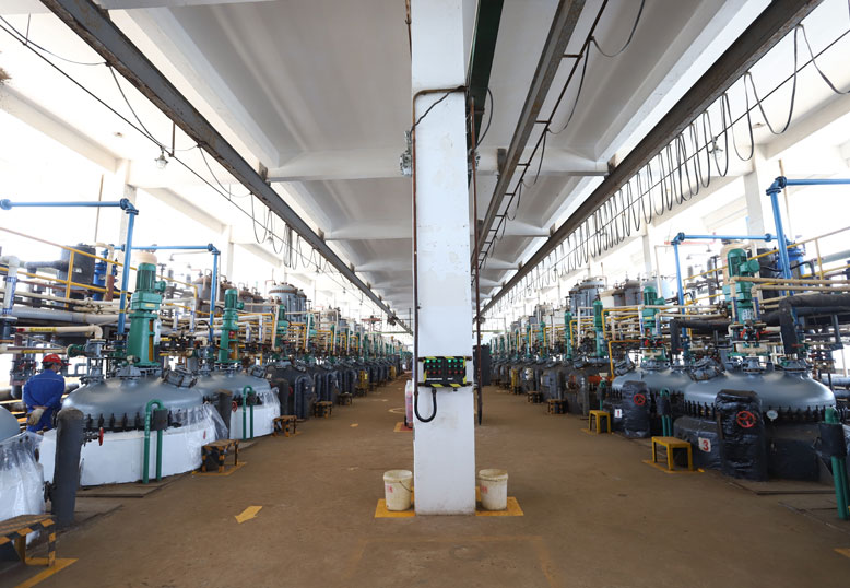 4套智能化草甘膦水劑包裝線(200克瓶裝到30公斤桶裝),產(chǎn)能為100噸/每天/單班;